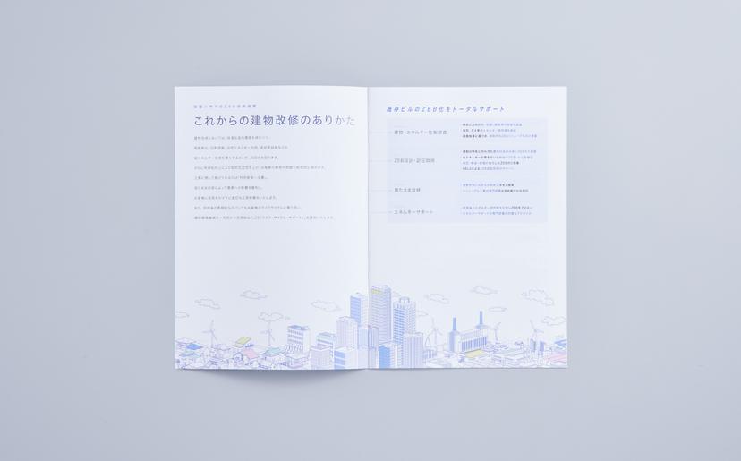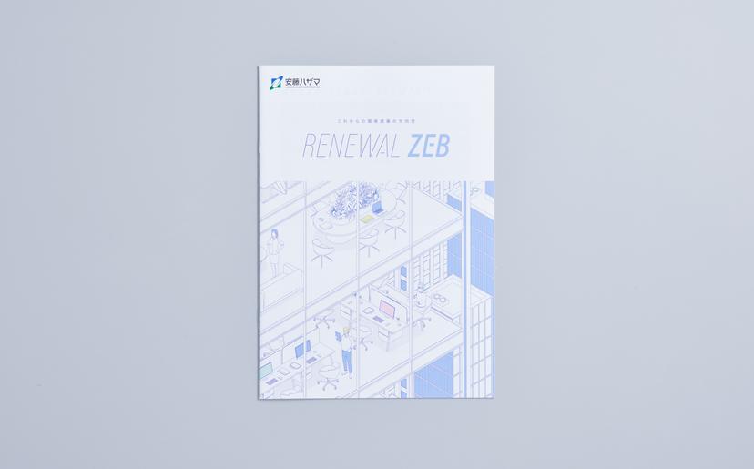 東京都港区に本社を置く総合建設会社(株)安藤・間様(以下「安藤ハザマ様」)の、入居を続けながら創エネ・省エネ建物への改修ができる「RENEWAL ZEB(リニューアル・ゼブ)」案内パンフレットを制作しました。「ZEB(ゼブ)」を解説した既存パンフレットや社内資料を基に、情報整理から伝え方・見せ方のご提案まで、デジタル・アド・サービス(以下das.)が一貫して進めました。