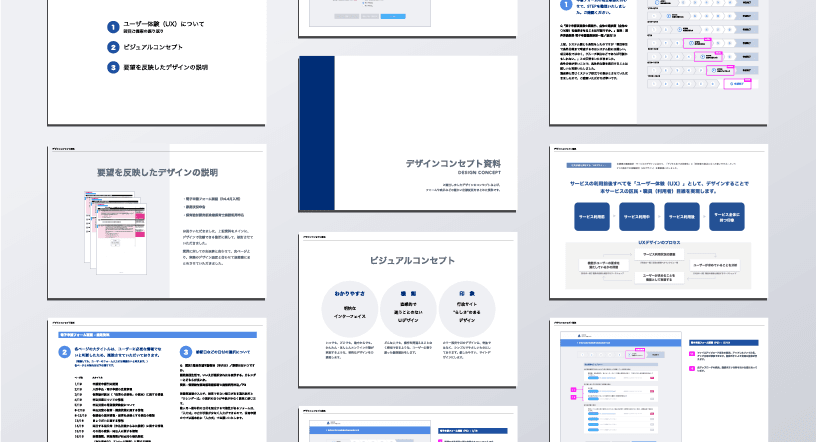 ユーザーの背景とニーズを踏まえて体験を設計し、イラスト込みのUXコンセプトシートにまとめて、システム設計チームに共有しました。本プロジェクトは多数のステークホルダーが関わっていたため、画面推移の順番や内容の根拠として共通認識を持つことがとても重要でした。